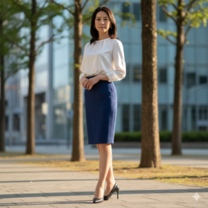 膝丈のスカートを